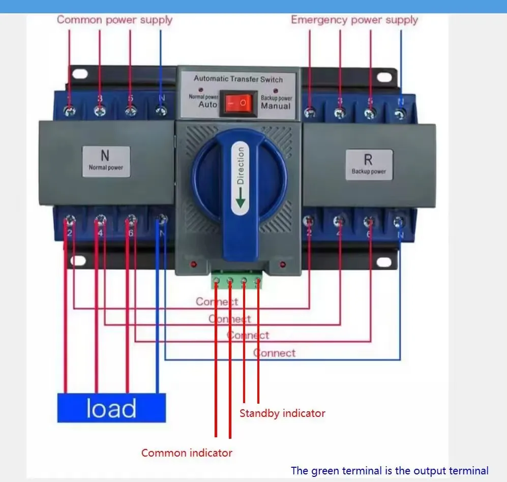 Durable & Sturdy: This dual-power automatic transfer switch has a flame-retardant plastic material shell, a built-in pure copper motor, and a copper indicator wiring terminal, which offer durability and sturdiness for this product.