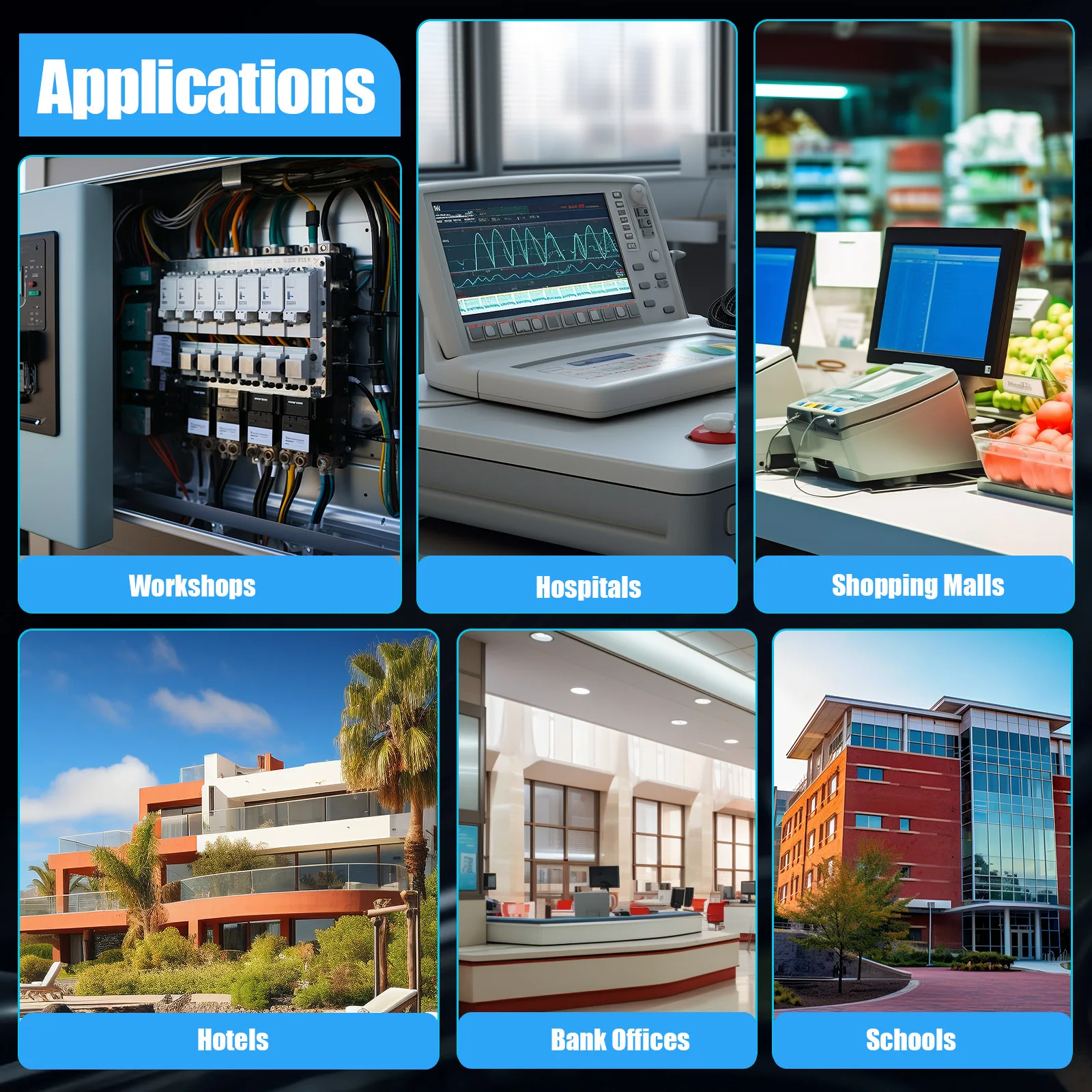 It is ideal for homes or public places and is especially suitable for household electricity, fireboxes, motor homes, hospitals, shopping malls, hotels, workshops, bank offices, etc.