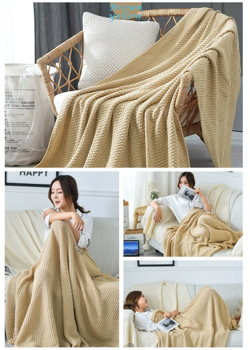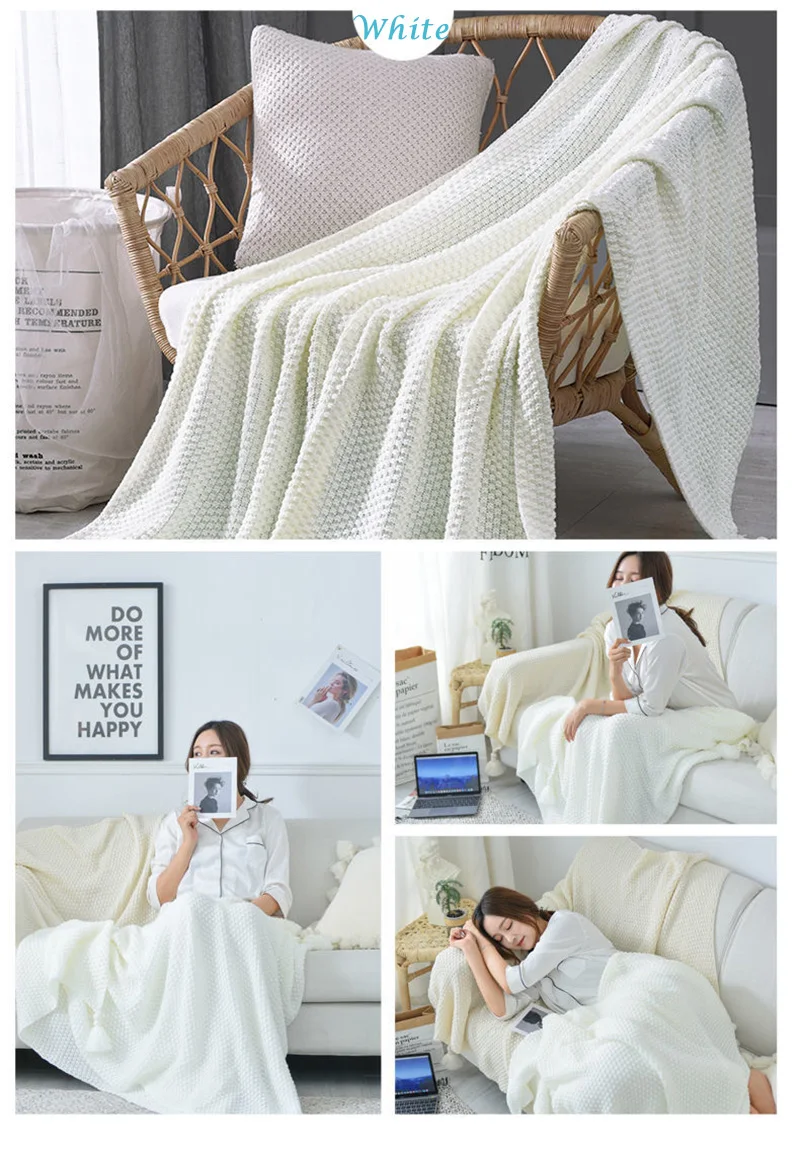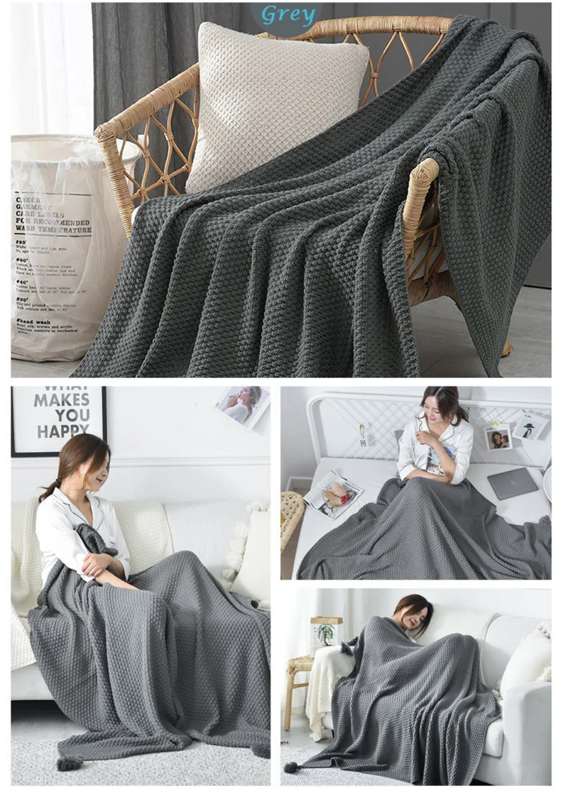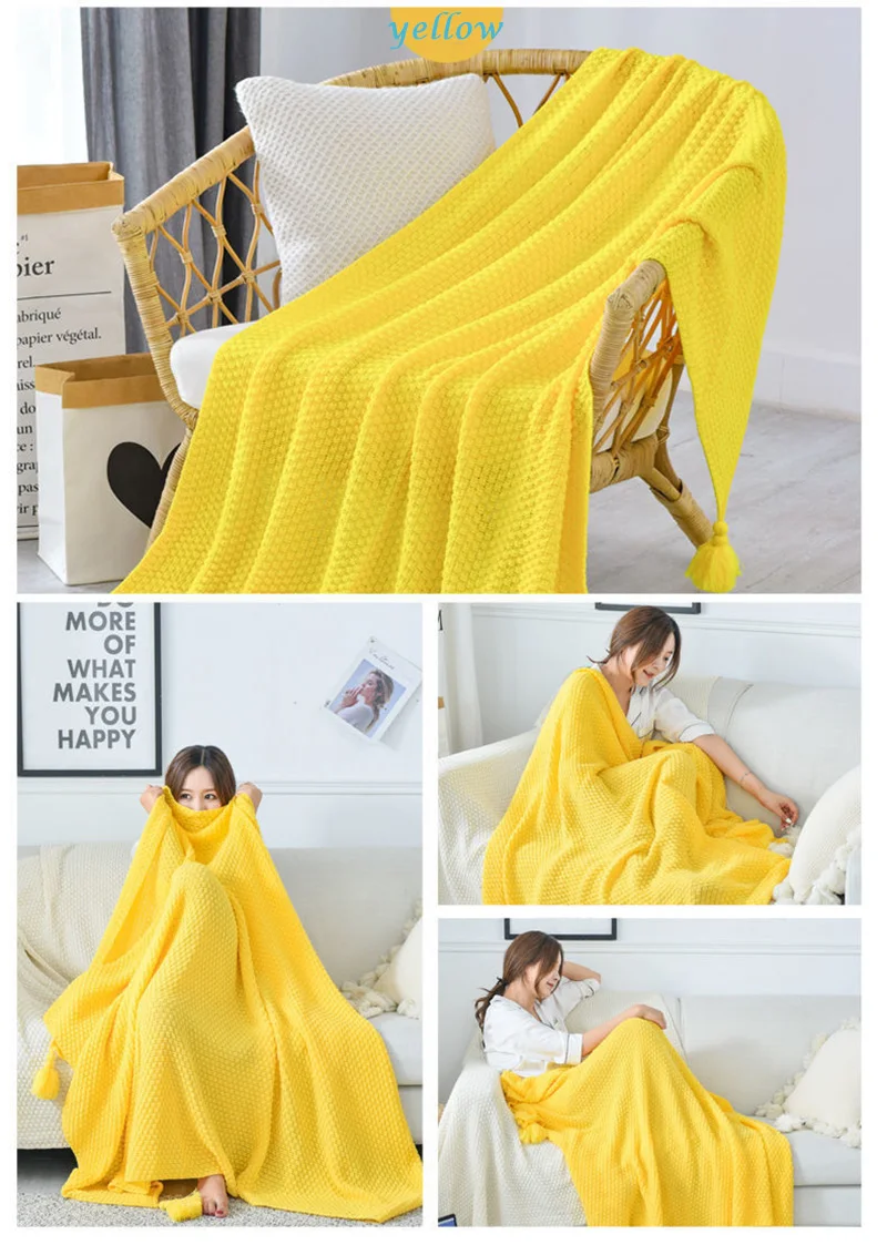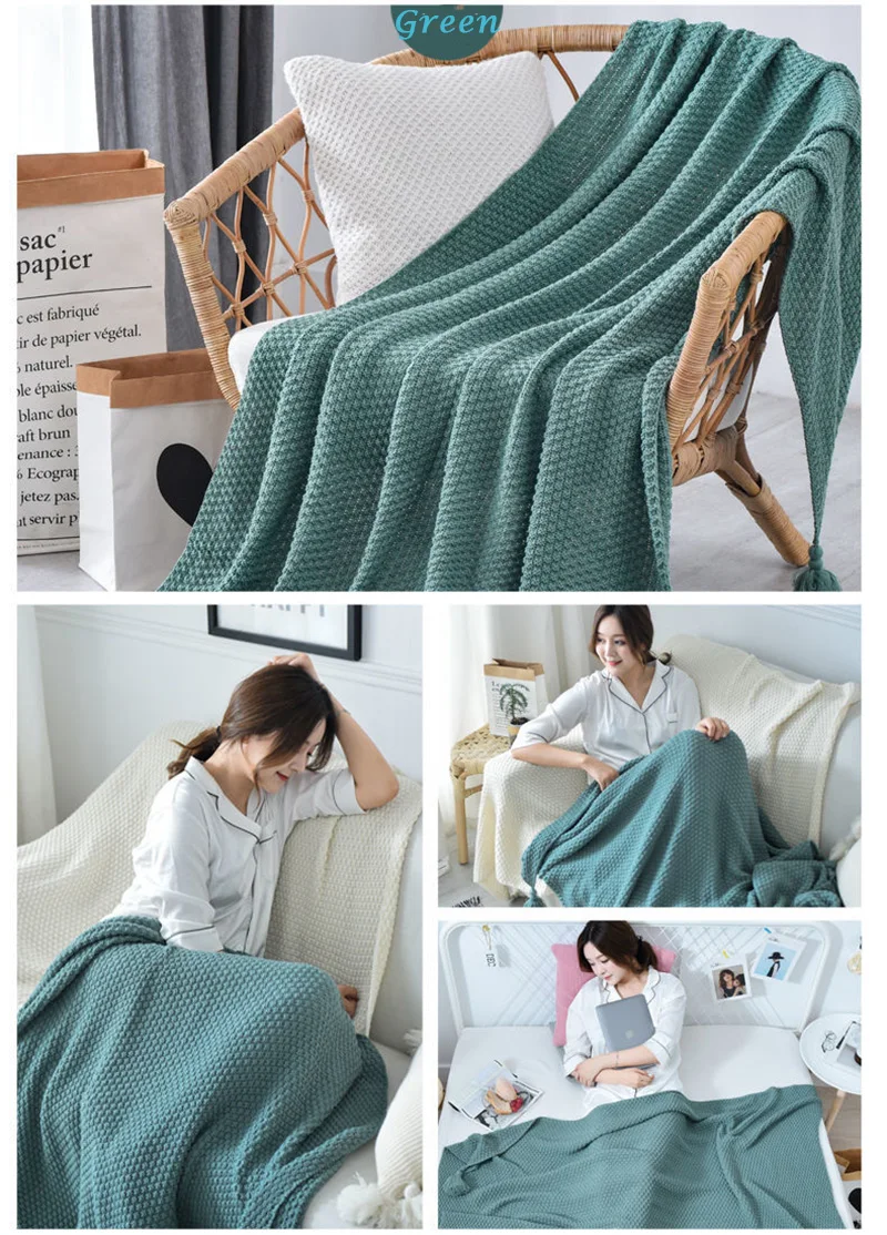 Nordic Tassel Knitted Blanket Solid Thread Blanket For Bed Travel Airplane Sofa Throw Blanket Large Size Air Conditioner Blanket