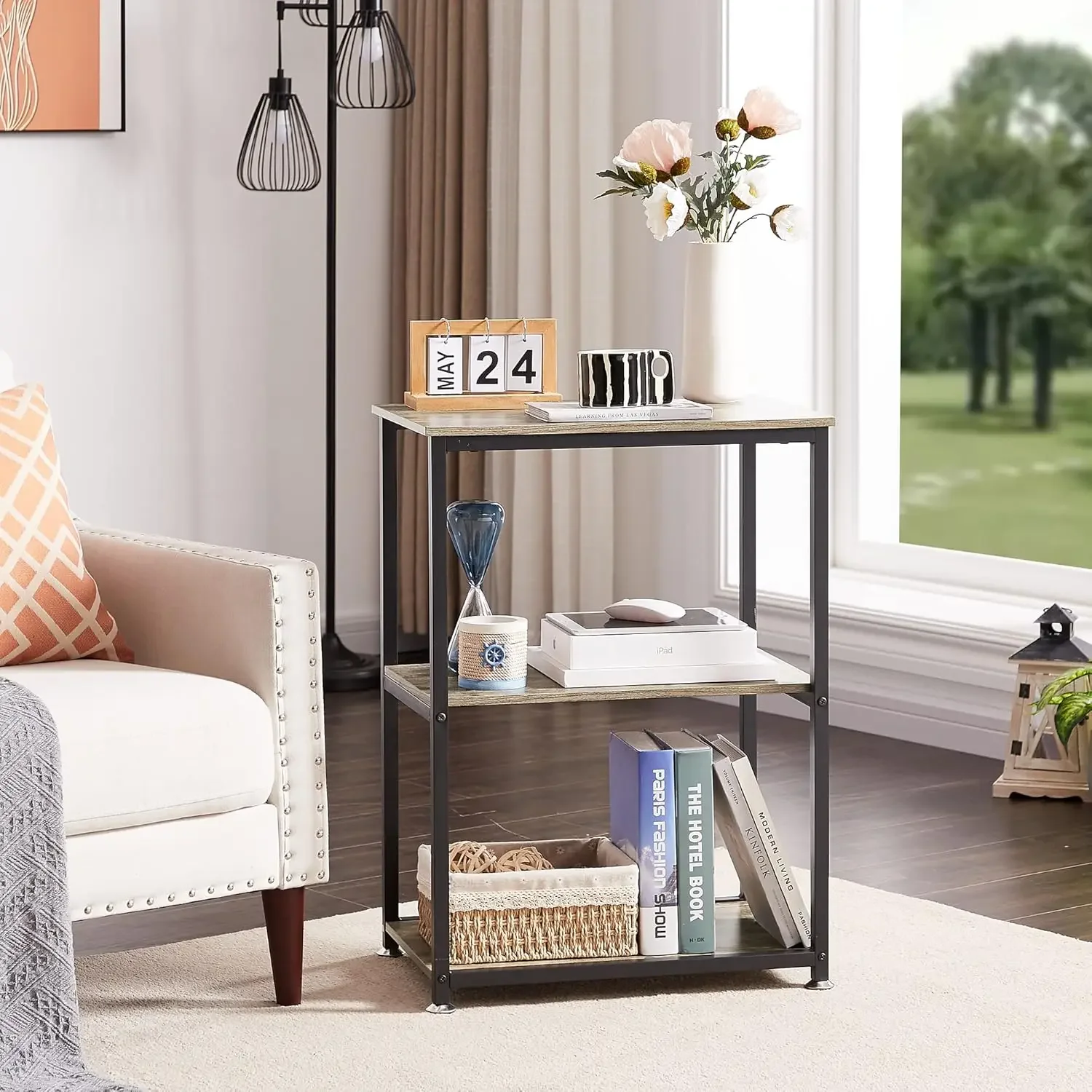Tall End Side Table Nightstand, 3-Tier Storage Shelf